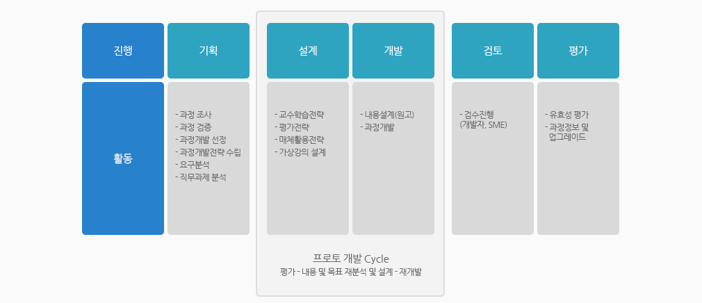 | ±â¾÷±³À° Àü¹® ÈÆ·Ã±â°ü ¢ß¾ÆÄ«½ºÅ¸´Â °æ¿µÈ¯°æ°ú ±³À°ÇöȲ ÆÄ¾Ç, °úÁ¤¿¡ ´ëÇÑ ¿ä±¸ ¹× Á÷¹«°úÁ¦ ºÐ¼® µîÀÇ ´Ü°è¸¦ ÅëÇØ ¾çÁúÀÇ ±³À°°úÁ¤°³¹ßÀ» À§ÇØ ³ë·ÂÇϰí ÀÖ½À´Ï´Ù. |